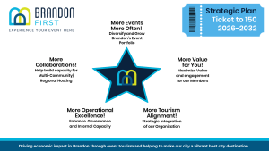 The plan, titled “A Ticket to 150,” sets a clear roadmap for how Brandon First will help grow event tourism, strengthen partnerships, and position the city for one of the most significant milestones in its history.